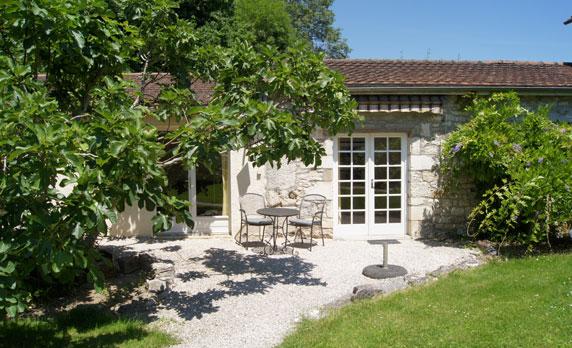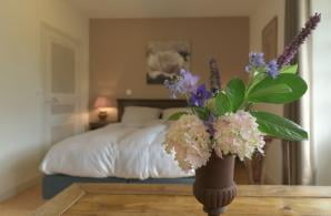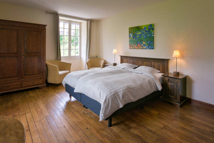 Le gîte de l’Atelier : une résidence spacieuse avec une chambre pour deux personnes. Il dispose d’une abondance de fenêtres avec vue sur le jardin et la cour.